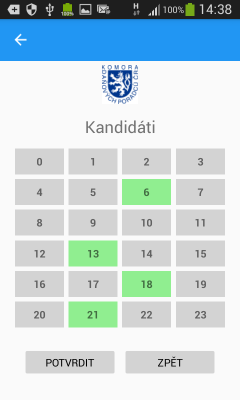 Výběr kandidátů číslo 5, 6, 14 a 17