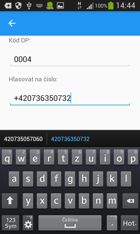 • nastavení telefonního čísla, na které se má odesílat daná sms (v sekci Nastavení)