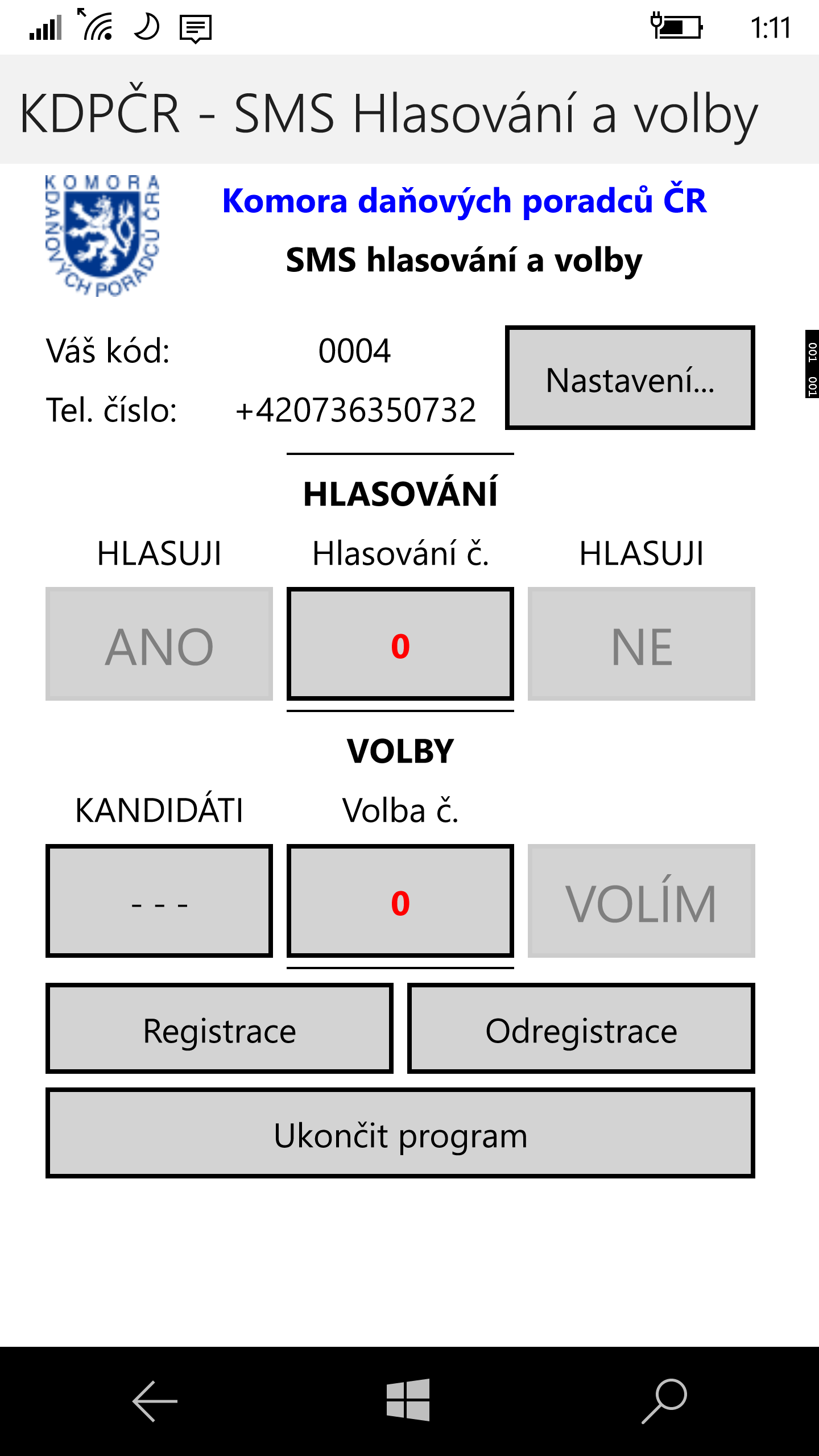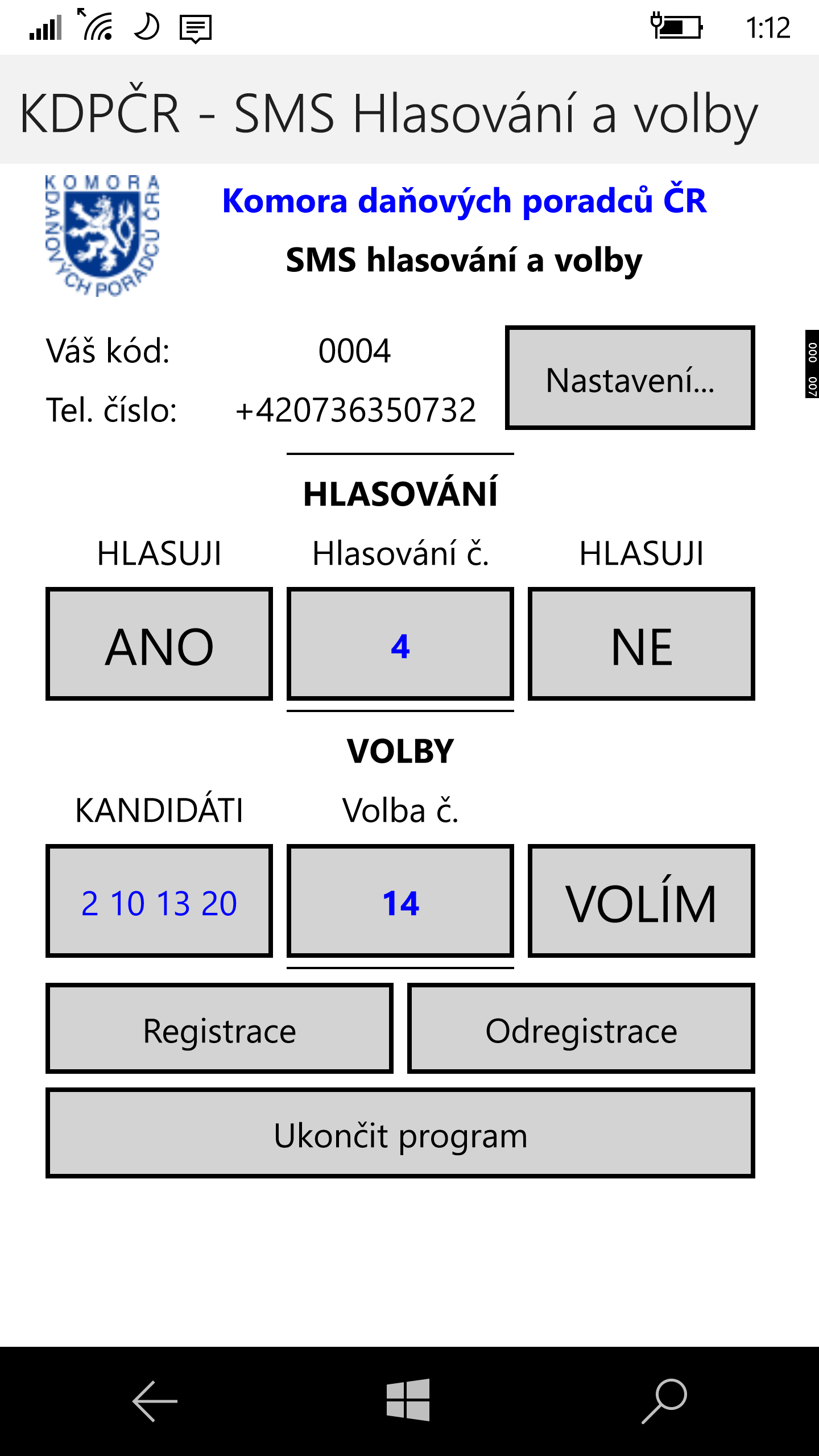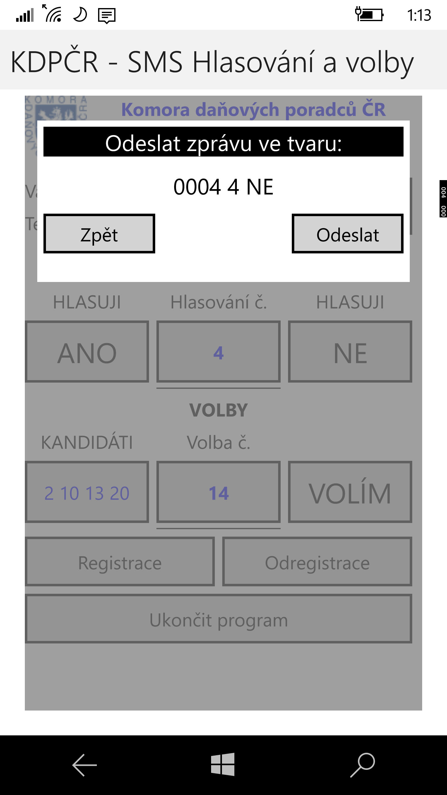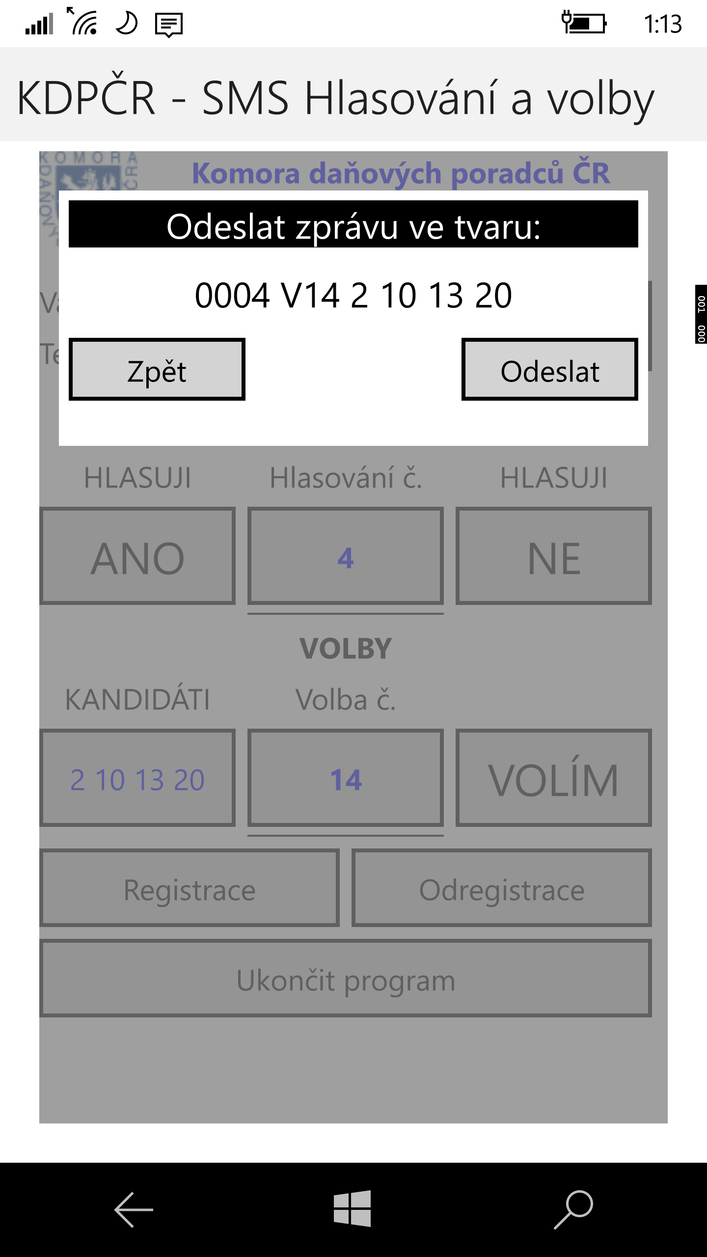- Použitím této aplikace souhlasíte s tím, že sms bude odeslána třetí straně. Pokud ponecháte předvyplněné číslo, sms bude odeslána na telefonní číslo Komory Daňových Poradců ČR (KDP ČR).