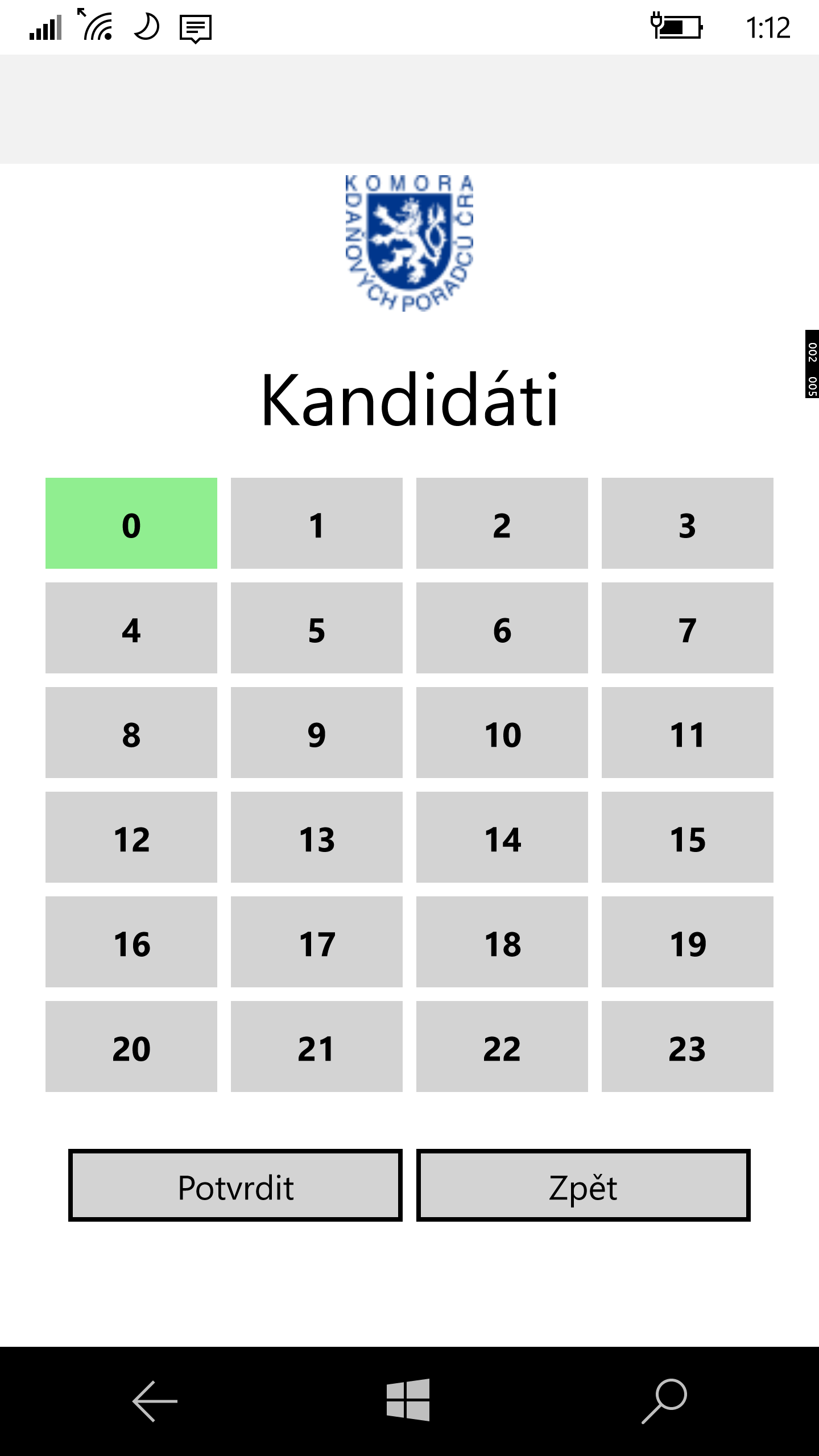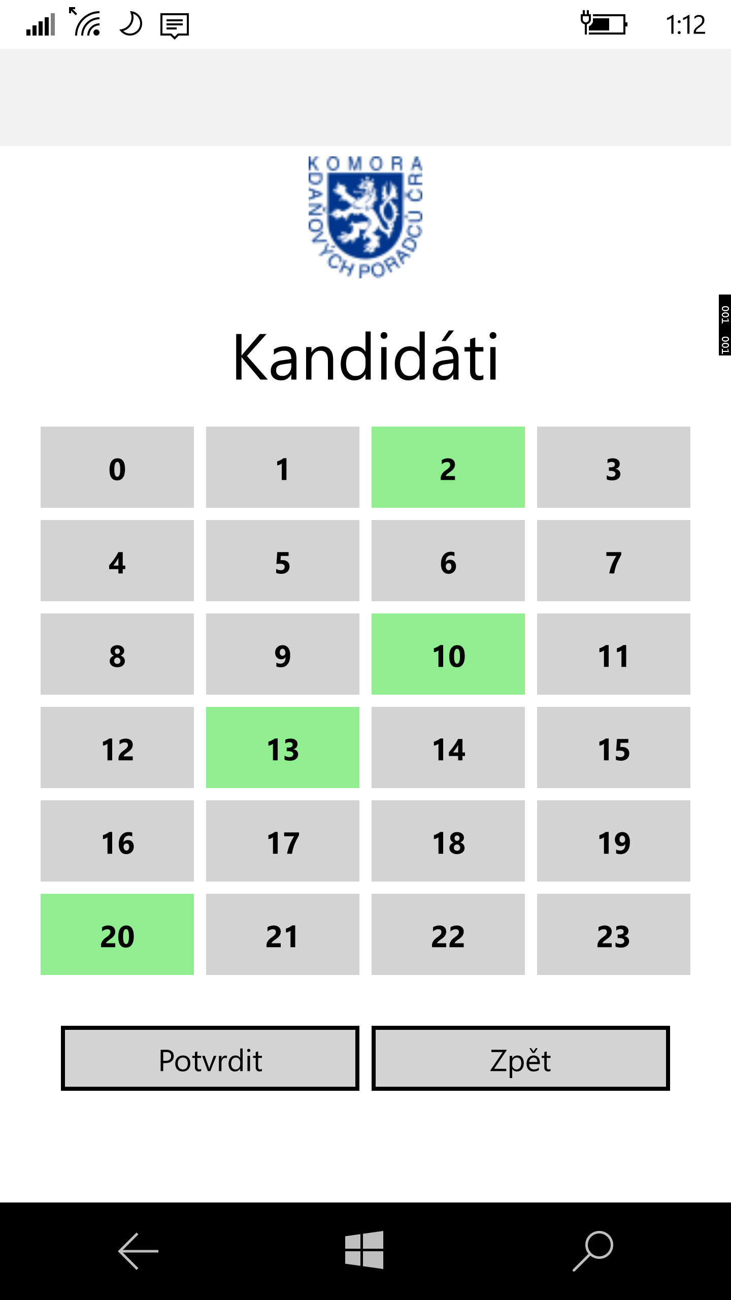 - C - čísla kandidátů (načtené tlačítkem v sekci VOLBY pod textem Kandidáti)